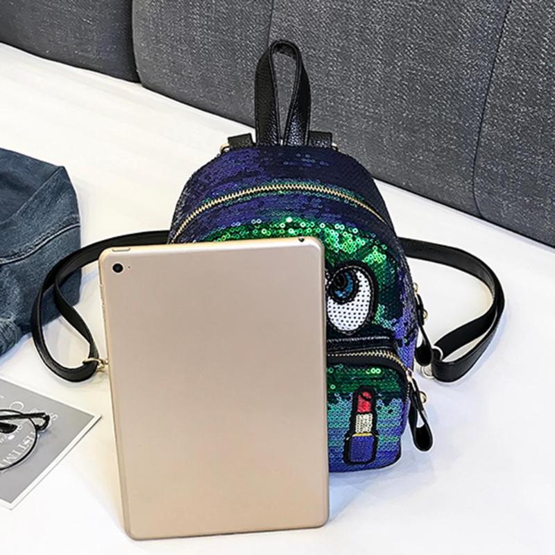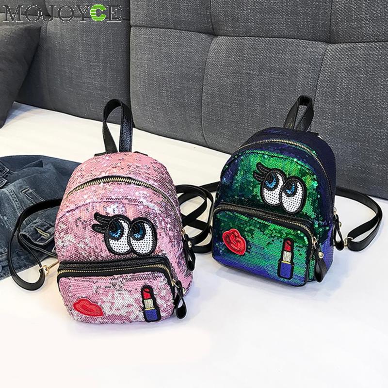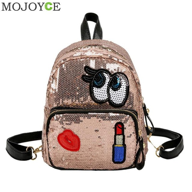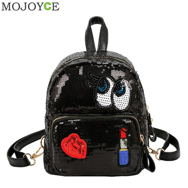 Leather Bling Glitter Sequins Embroidery Cute Cartoon Women's Badge Backpack