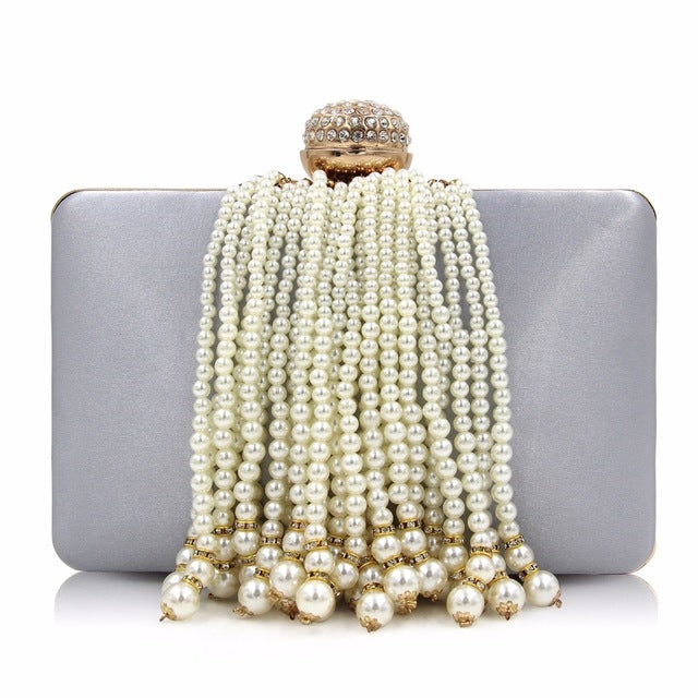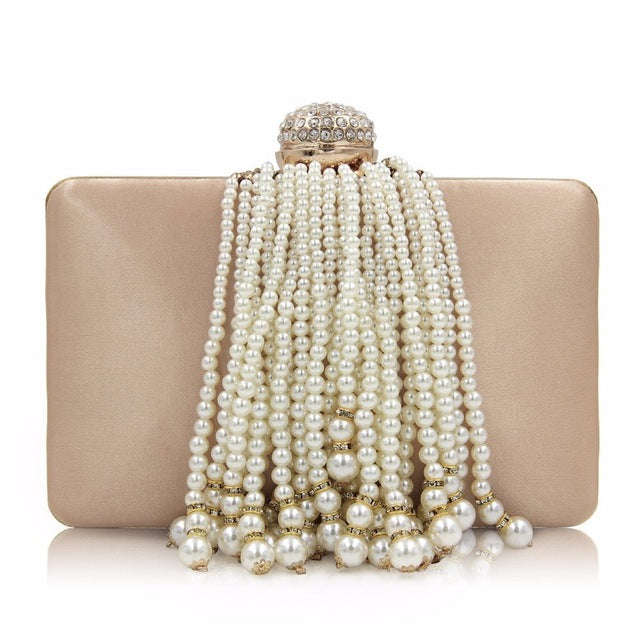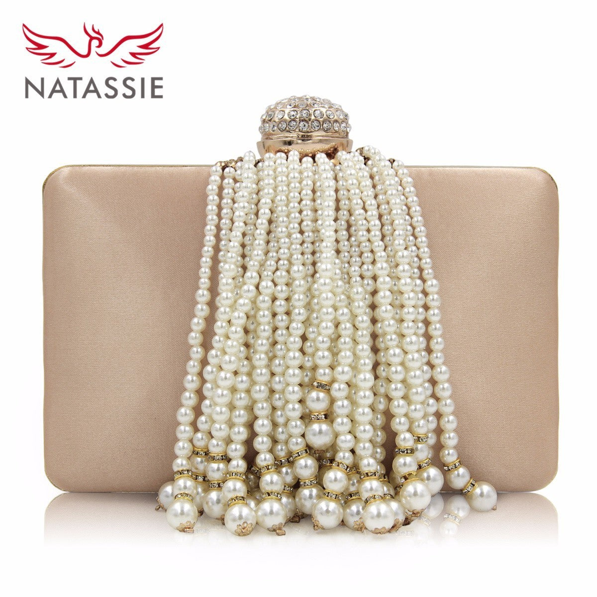 NATASSIE Pearl Tassel Women Clutch Bag Female Evening Bags Ladies Gold Clutch Purses Girl Party Wedding Bag