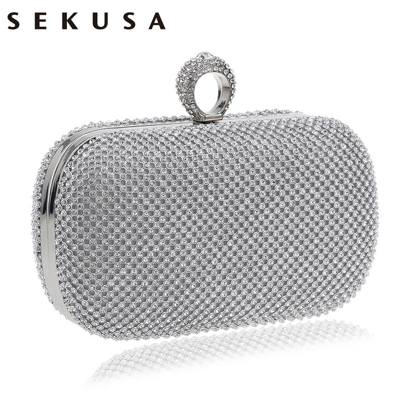 SEKUSA Clutch Diamond-Studded With Chain Shoulder Handbags Wallets For Wedding Evening Bag