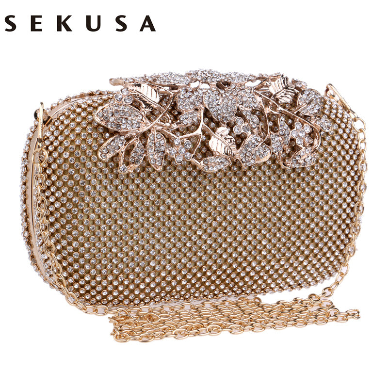 SEKUSA Flower Crystal Evening Bag Clutch Bags Clutches Wedding Purse Rhinestones Wedding Handbags Silver/Gold/Black Evening Bag