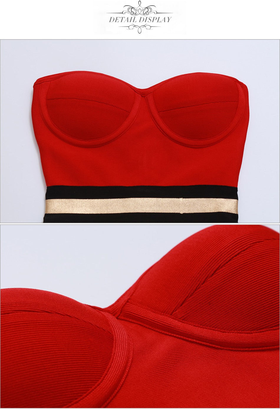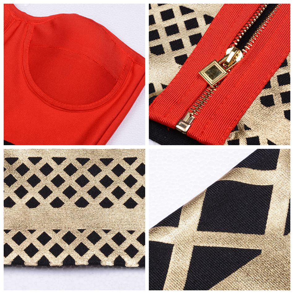 Gold Red Patchwork Strapless Prom Bodycon Dress