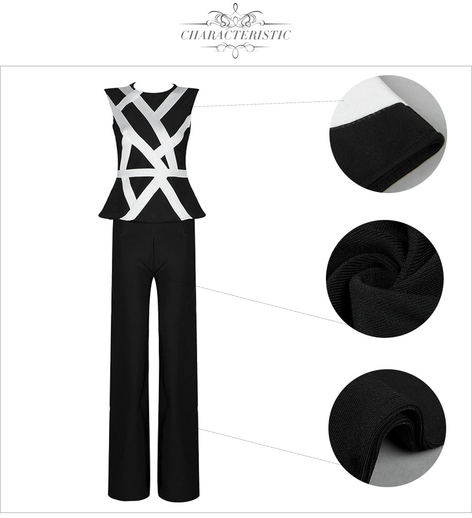 Striped White Tops&Pant 2 Two Pieces Set