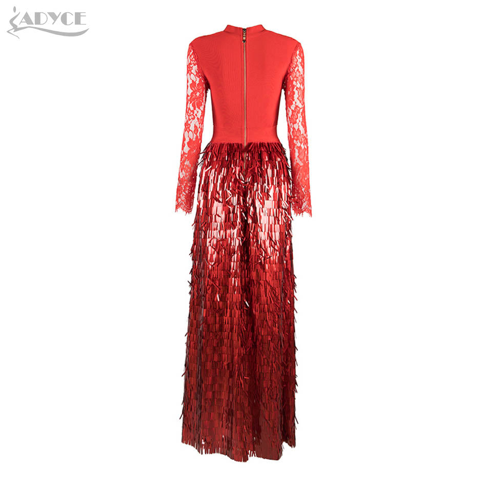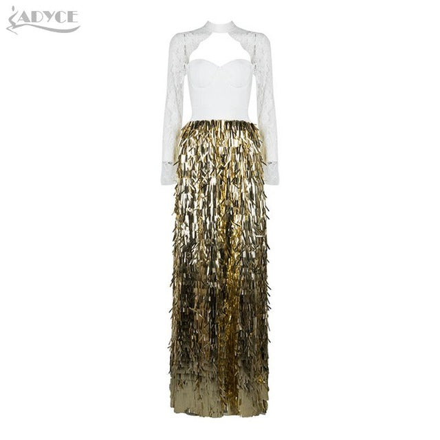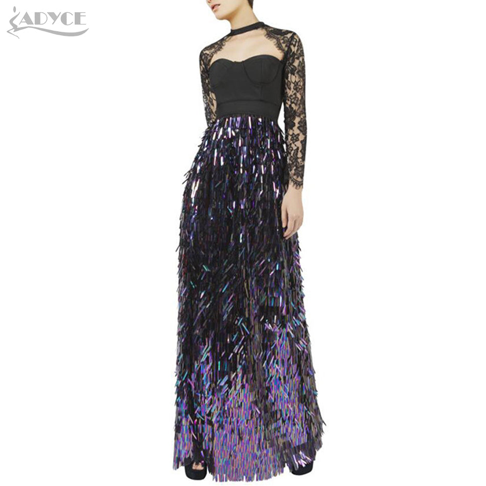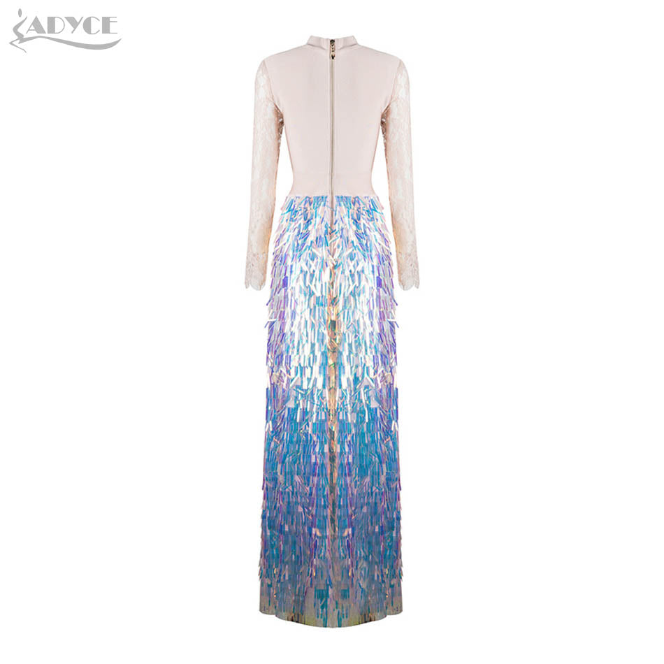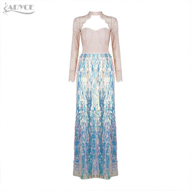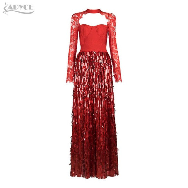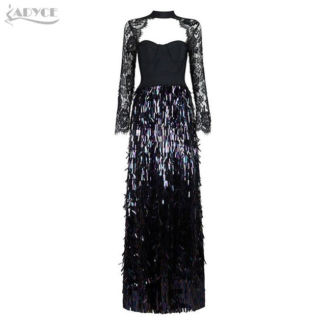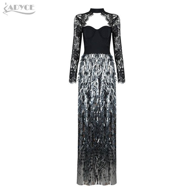 Brand Lace Sequins Long Sleeve Maxİ Dress