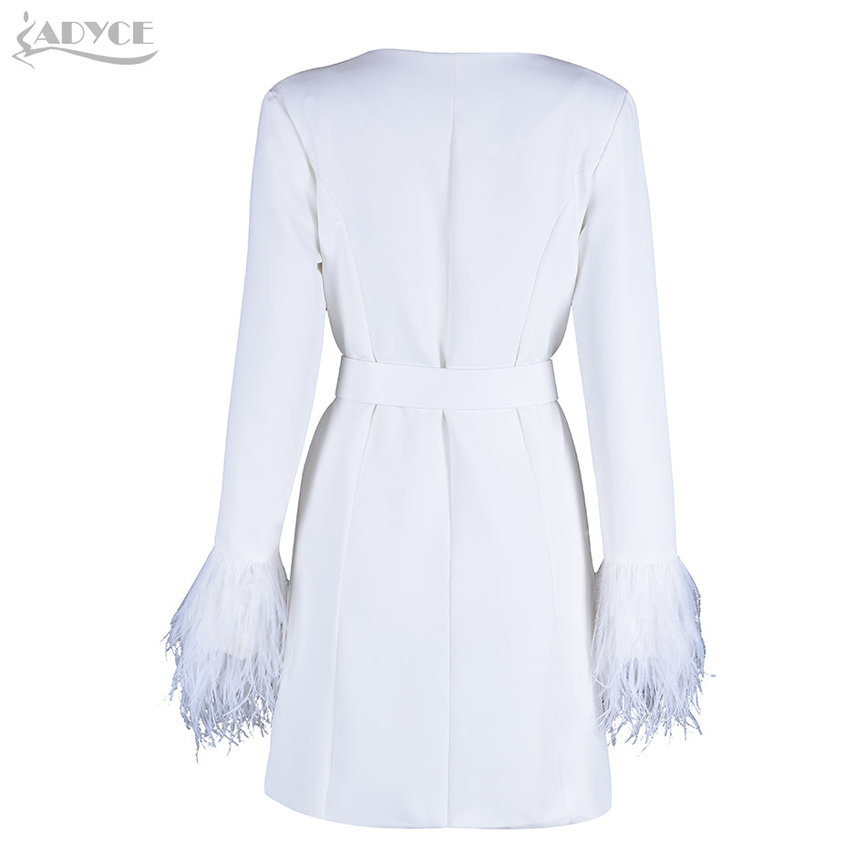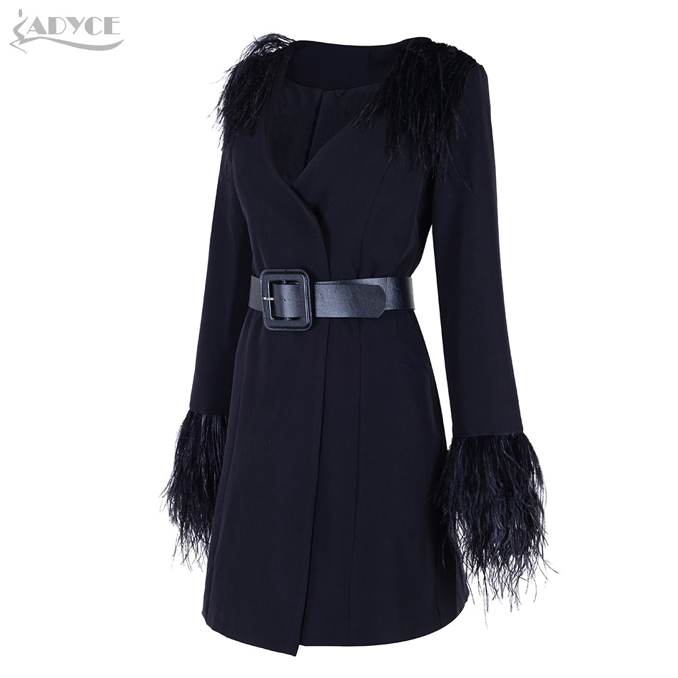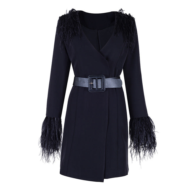 Long Sleeve V-Neck Feather Slim Style Women Coats