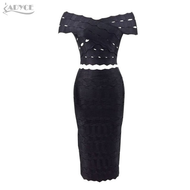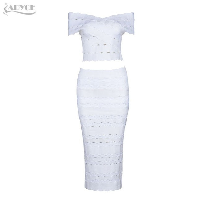 2018 New Arrival Winter Bandage Dress Set Chic Women Elegant White Off the Shoulder 2 Two Pieces Set Party Dress