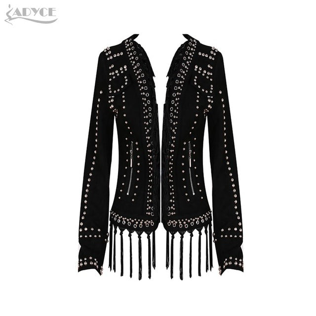 Rivet Tassels Embellished Long Sleeve Women Jacket Coat