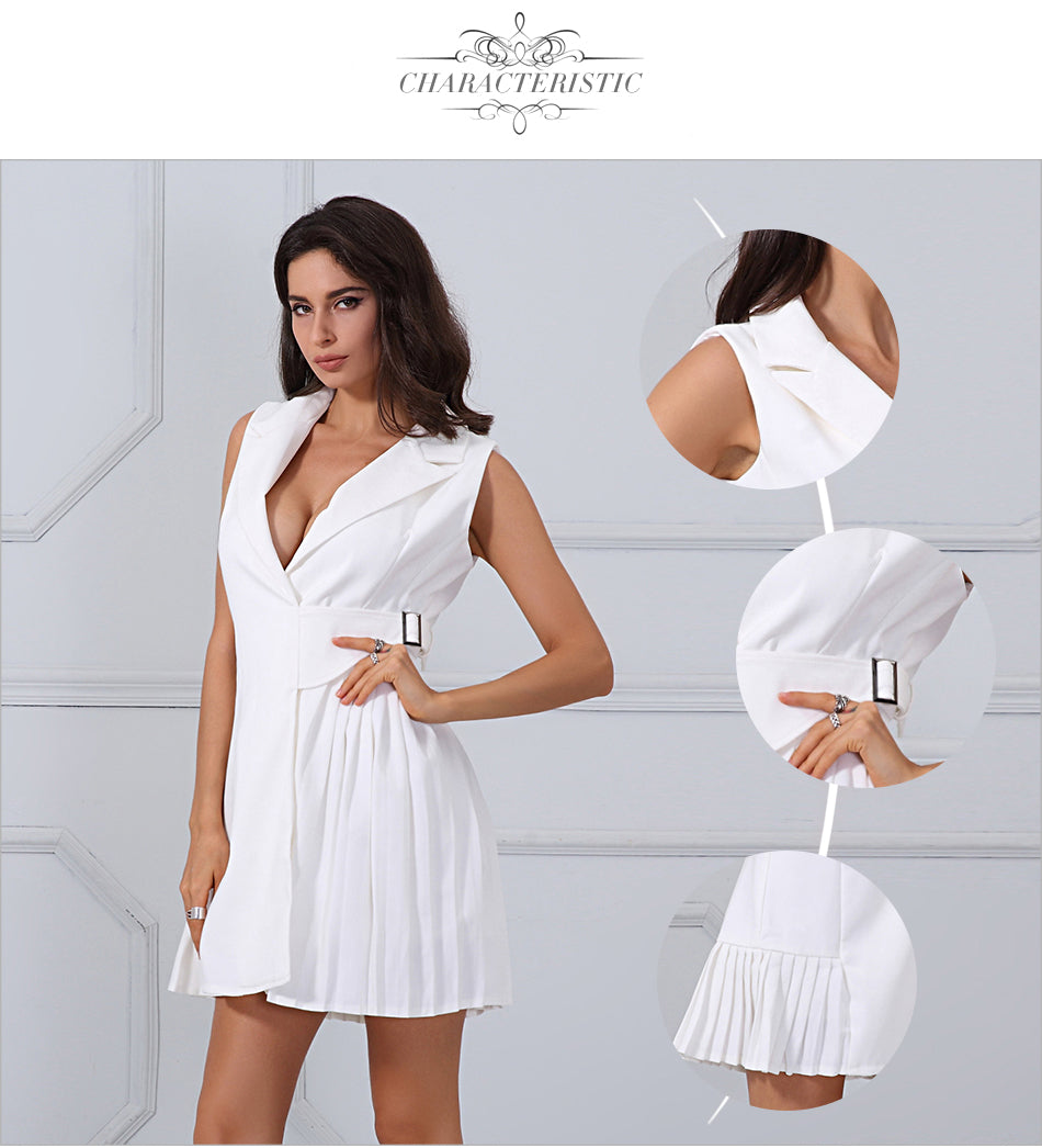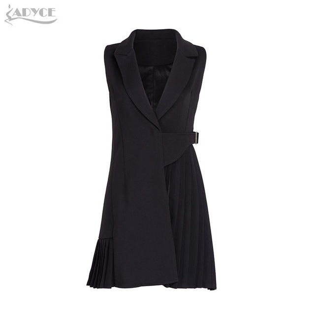 Trench Black V-Neck Ruched Skirt Style Belt Coat Sleeveless Long Style Women Formal Coat