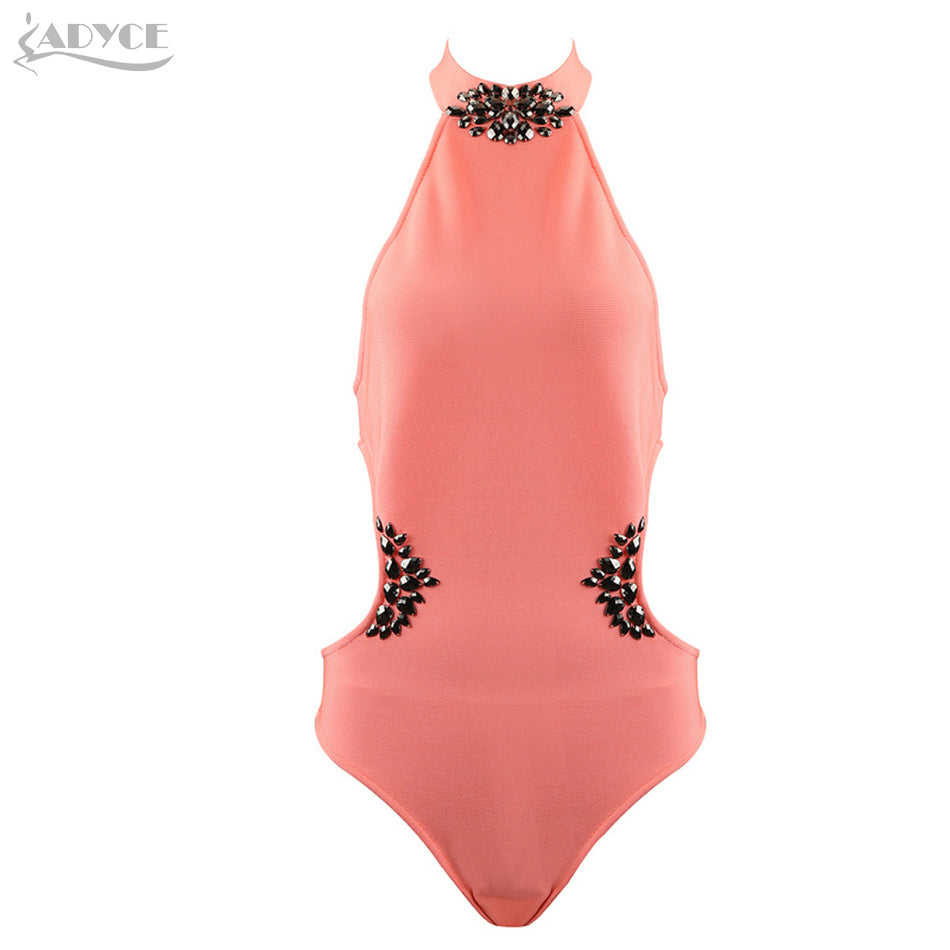 Sexy Backless Swimsuits Beading Sleeveless Halter Bodycon Bikinis Bodysuits