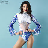 Sexy Long Sleeve Beading Diamond Lace Mesh Bikini Swimsuit