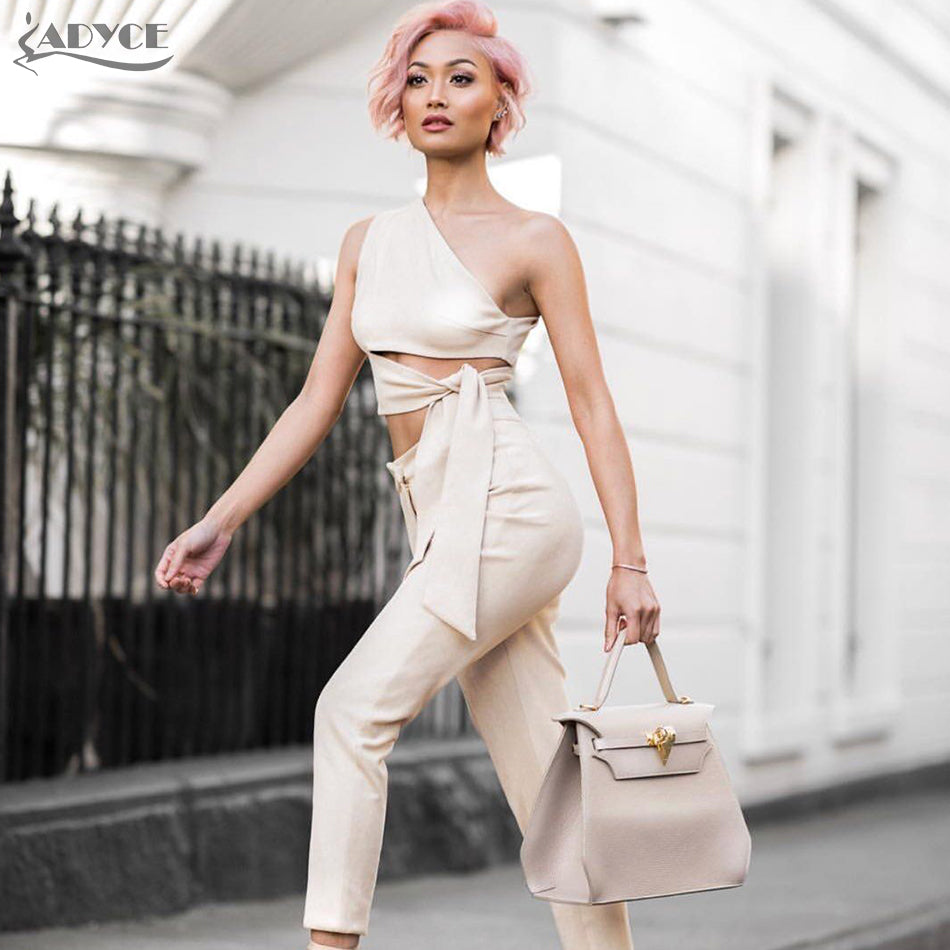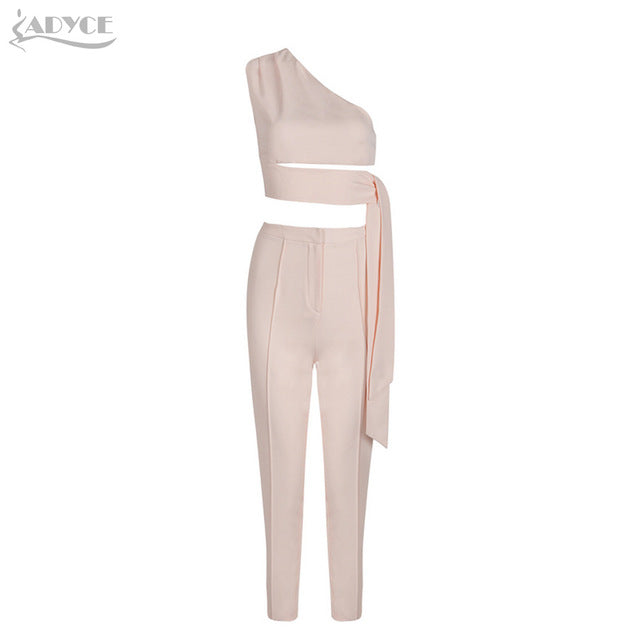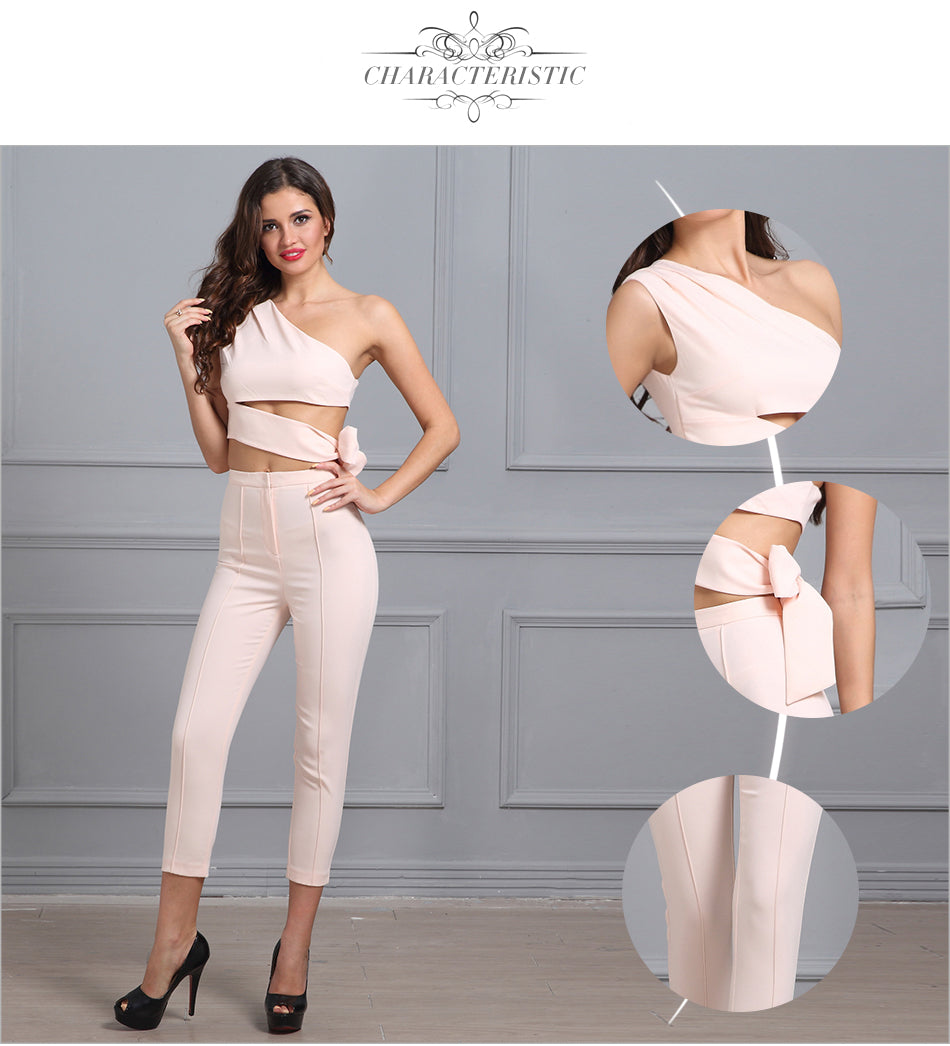 Leggings one shoulder top Pink Ankle-length Pants Women Set
