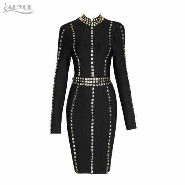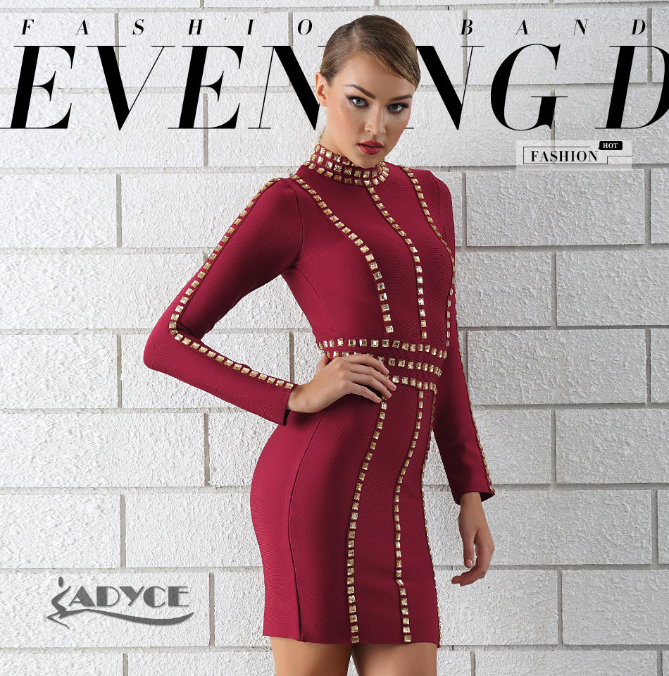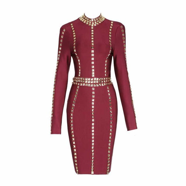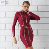 Stand Neck Long Sleeve Sequined Knee-Length Dress