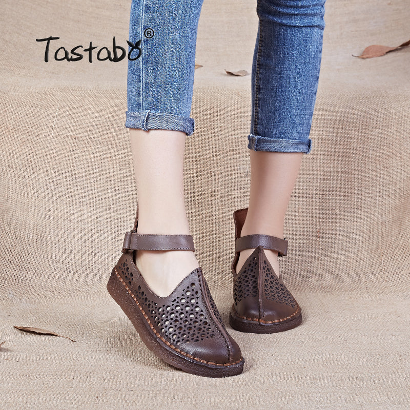 Tastabo Ladies Shoes Handmade Shoe Genuine Leather Flats Women Driving Shoes Hollow Soft Genuine Moccasins 2017 Summer Shoes