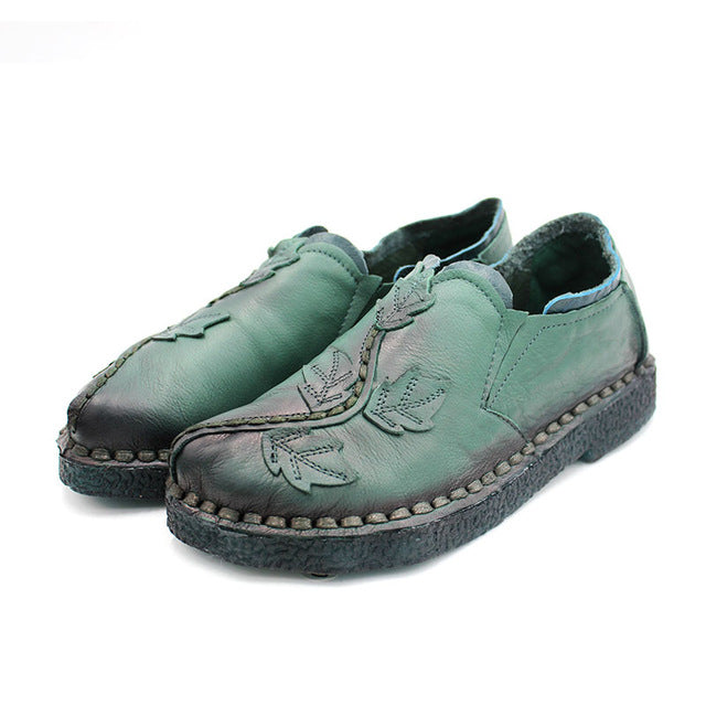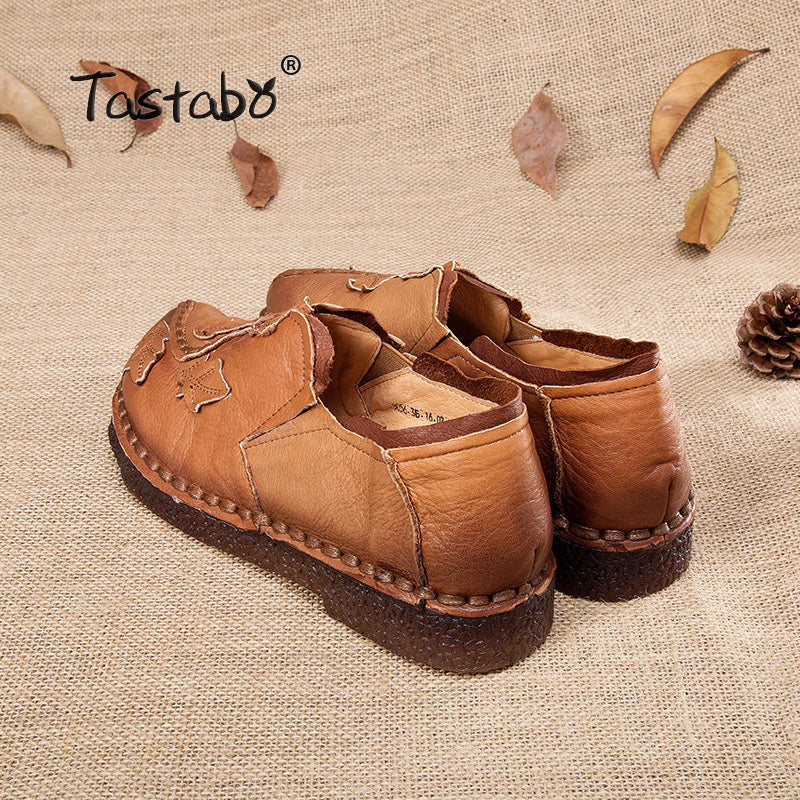 Tastabo Retro Autumn Shoe Women Fashion Handmade Leave Comfortable Women Folk Flat Shoe Femme Genuine Leather Soft Driving Shoe