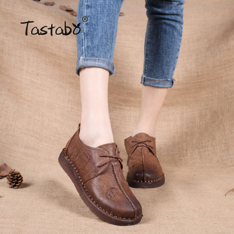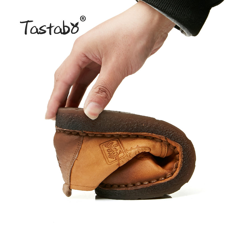 Tastabo Genuine Leather Flat Shoe Pregnant Women Shoe Mother Driving Shoe Female Moccasins Women Flats Hand-Sewing Shoes