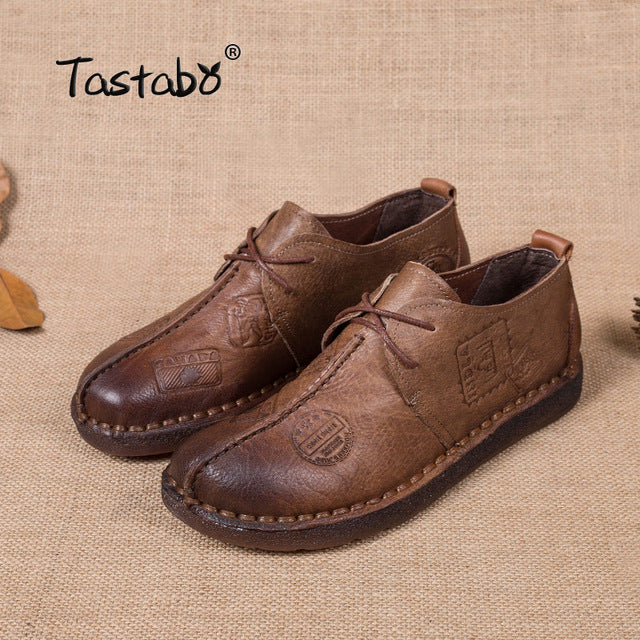 Tastabo Genuine Leather Flat Flats Hand-Sewing Shoes