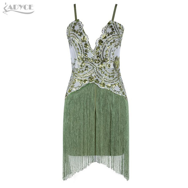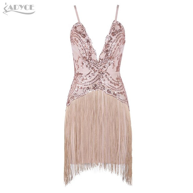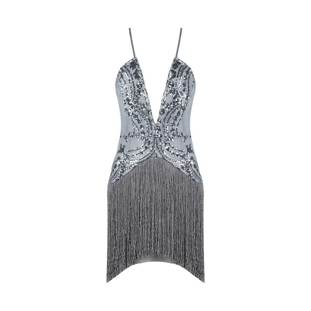 Sequins Tassel Fringe Mini Spaghetti Strap Dress