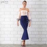 Strapless Button Studded Sexy Mermaid Maxi Dress