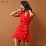 Formal Double Breasted Trench Red Black Button Sleeveless Skirt Style Pleated Long Women Coat