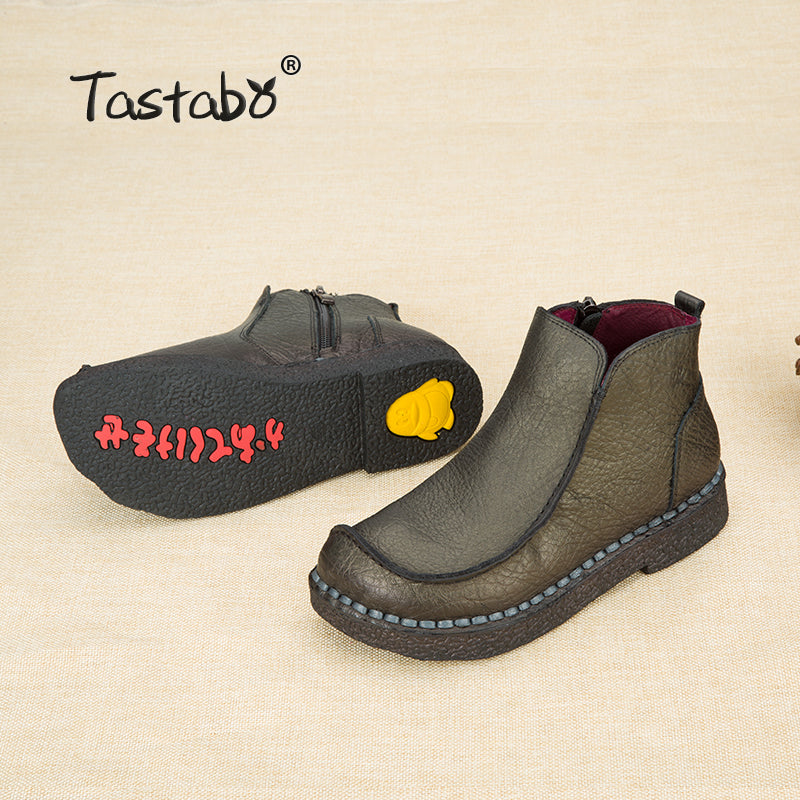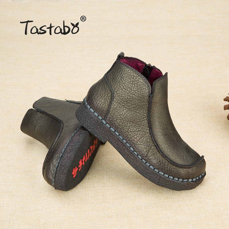 Fashion Handmade Boots For Women Genuine Leather Ankle Shoes Vintage Mom Women Shoes Round Toes Martin Boots