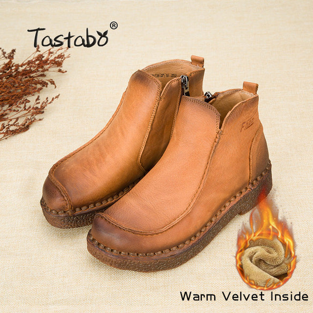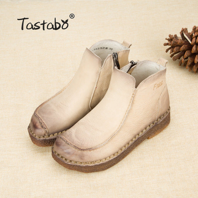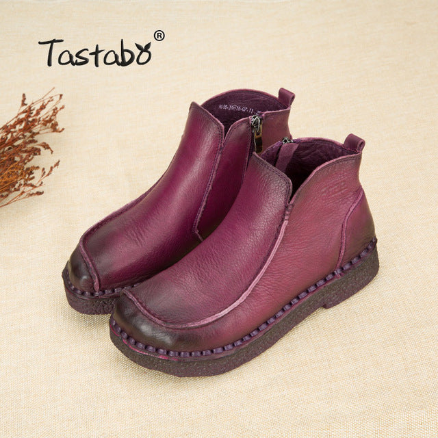Handmade For Women Genuine Leather Ankle Vintage Mom Round Toes Martin Boots