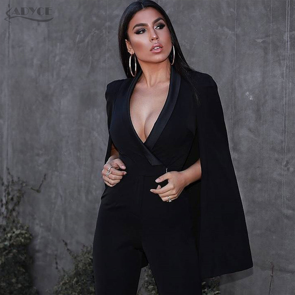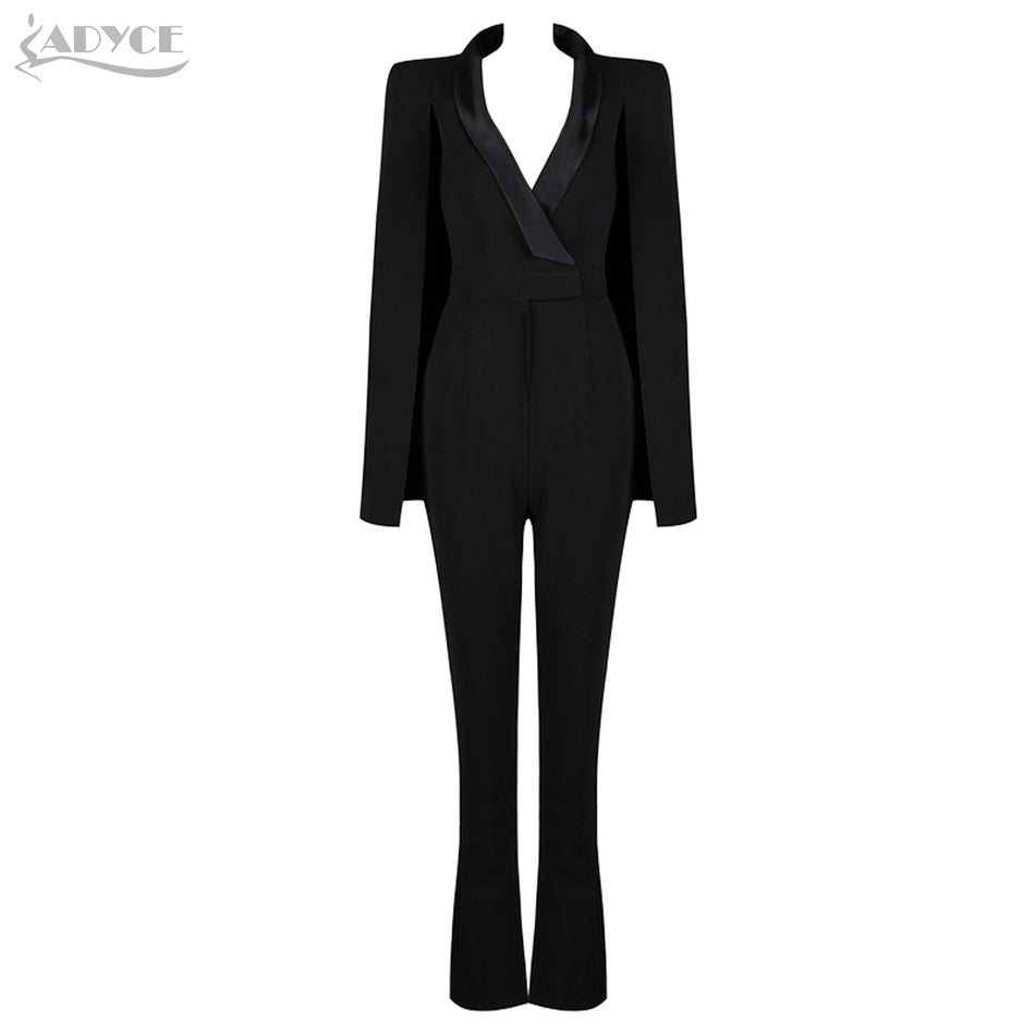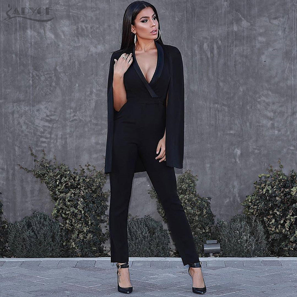 Long Bandage Jumpsuits Rompers Bodysuit Black V Neck Jumpsuit