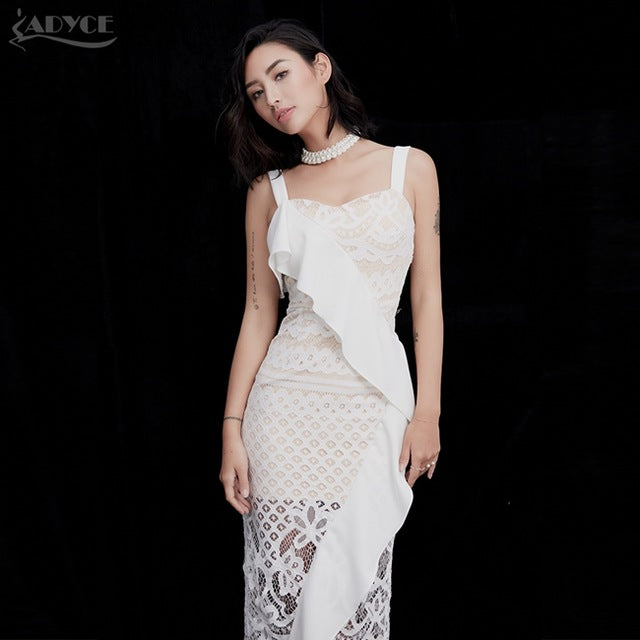 Mid Sexy Sleeveless Lace Patchwork Ruffles Bodycon Party Dress