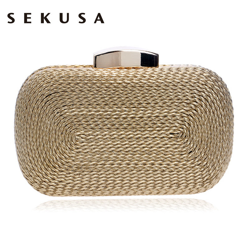 SEKUSA Fashion Women Messenger Bags Knitted Style Vintage Metal Day Clutches Small Purse Evening Bags For Wedding Party Bag